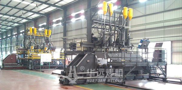 該多功能堆焊機(jī)(4機(jī)頭)是用于對(duì)軋輥和回轉(zhuǎn)體表面堆焊高溫抗磨層的專(zhuān)用設(shè)備。軋輥一般為圓柱形回轉(zhuǎn)體,為保證堆焊層均勻,采用螺旋線(xiàn)堆焊法。焊接時(shí)主傳動(dòng)系統(tǒng)將運(yùn)動(dòng)傳遞到主軸,主軸驅(qū)動(dòng)軋輥旋轉(zhuǎn),焊接機(jī)頭沿軋輥軸向平移,從而在工件表面形成螺旋線(xiàn)堆焊縫,因焊縫有肯定的寬度,每匝焊縫間有肯定的搭接量,較后在工件表面形成具有足夠的紅硬性、高溫抗磨性和熱疲勞性的堆焊層。