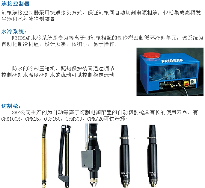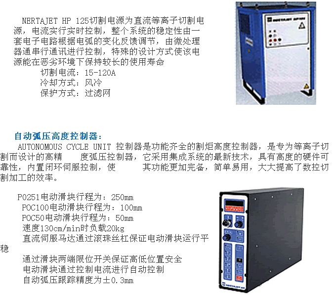 SAF公司的PLASMATOME系列切割機是為氧和等離子切割設計的,整套設備的設計由既懂等離子技術又能應用等離子工藝的SAF公司完成。PLAMATOME系列切割機安裝PO251工具架,升降行程250MM,該系列裝置切割范圍為:0.5MM—150MM,選擇如下:切割電源:從單割炬的NERTAJET HP125到雙割炬的NERTAJET HP600