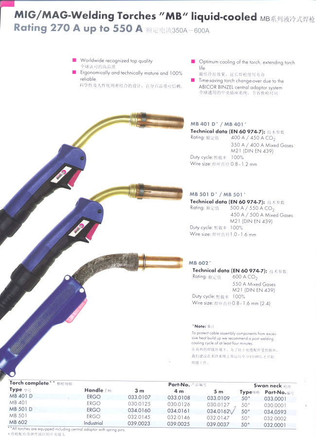 MB系列液冷式焊槍