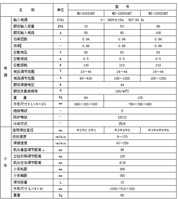 MZ-630、1000、1250IGBT逆變式自動埋弧焊機