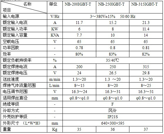 杭州NB-200/250/315IGBT-T逆變式CO2/MIG/MAG氣體保護焊機